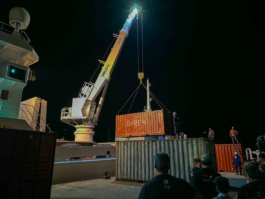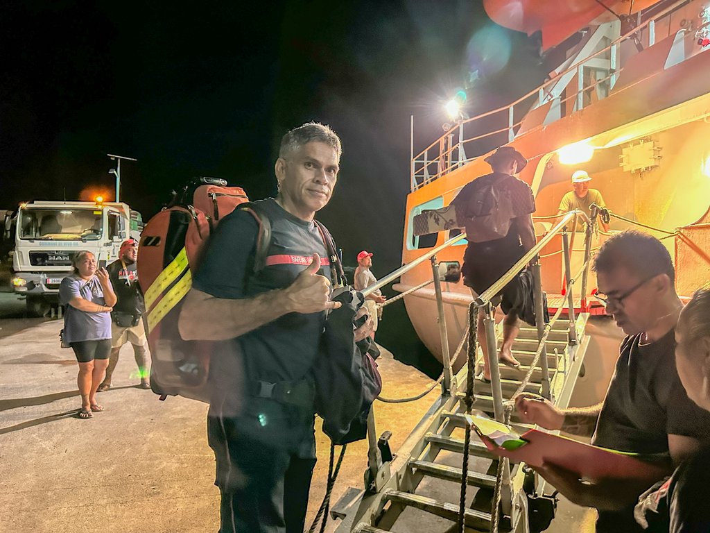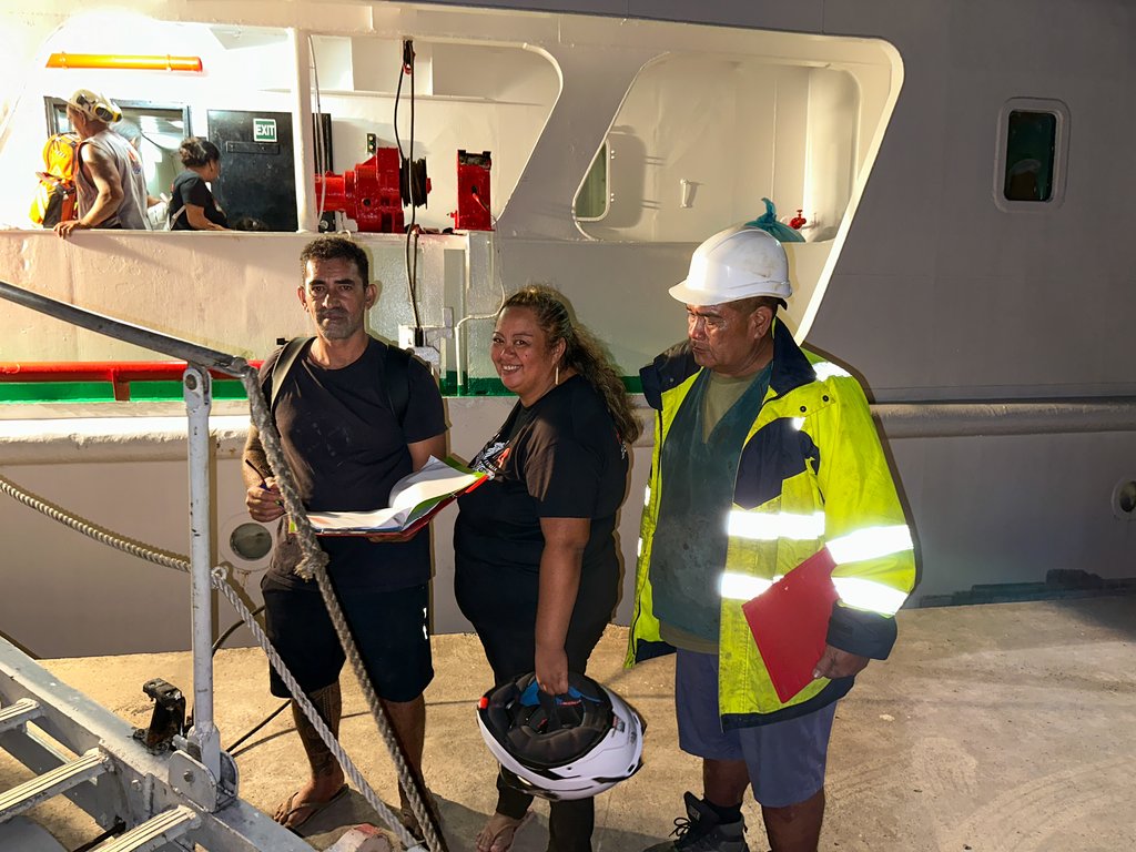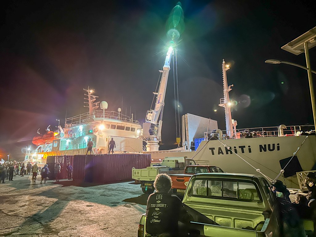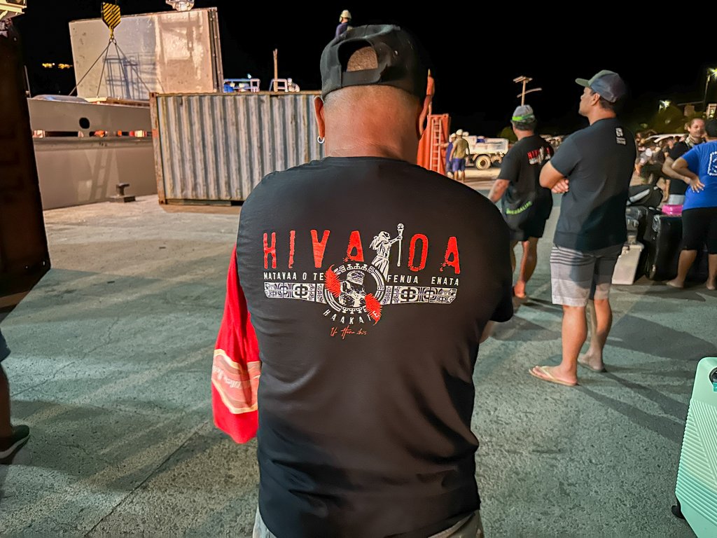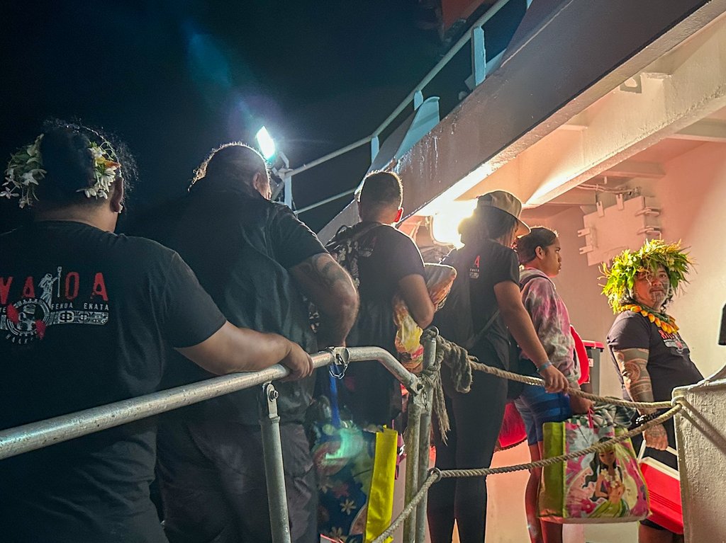 Le navire Tahiti Nui vient de quitter le port de Tahauku avec à son bord 135 passagers, composant la délégation de Hiva Oa, et plus de 30 tonnes de fret.